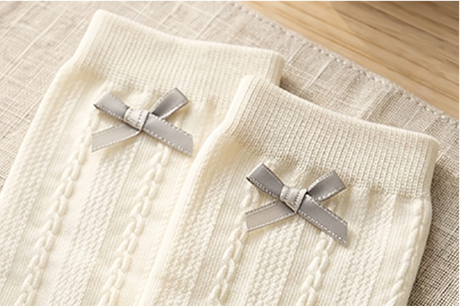 日系溫柔感細緻麻花蝴蝶結裝飾中筒襪