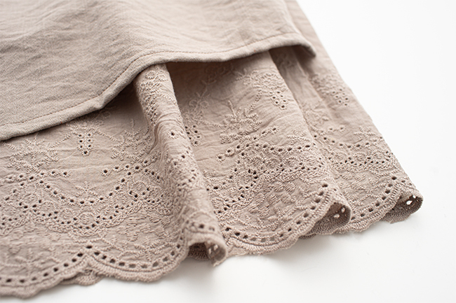 內裡下擺繡花增加細節層次設計感