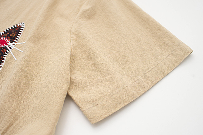 變形蟲拼布小貓口袋棉麻感上衣