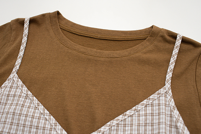 日系竹節棉格紋背心兩件式上衣