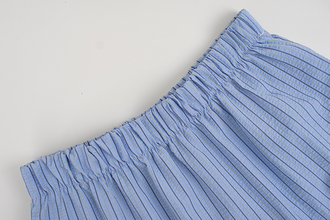 緹花半拉鍊連帽上衣條紋泡泡布抽皺長裙組合