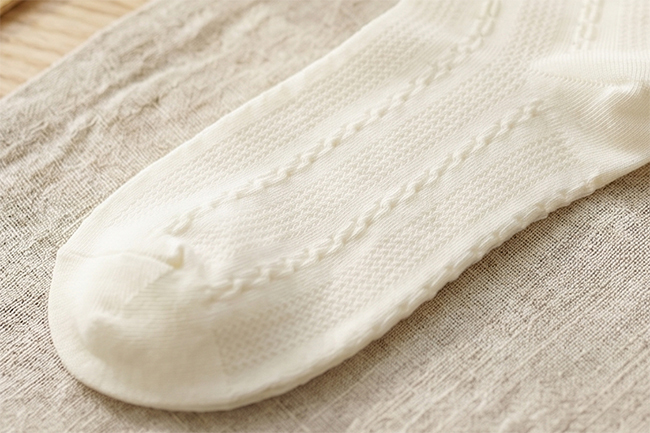 日系溫柔感細緻麻花蝴蝶結裝飾中筒襪