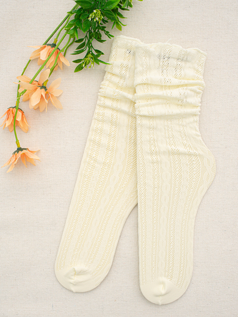 G0256麻花織紋堆堆中筒網襪(奶油白)