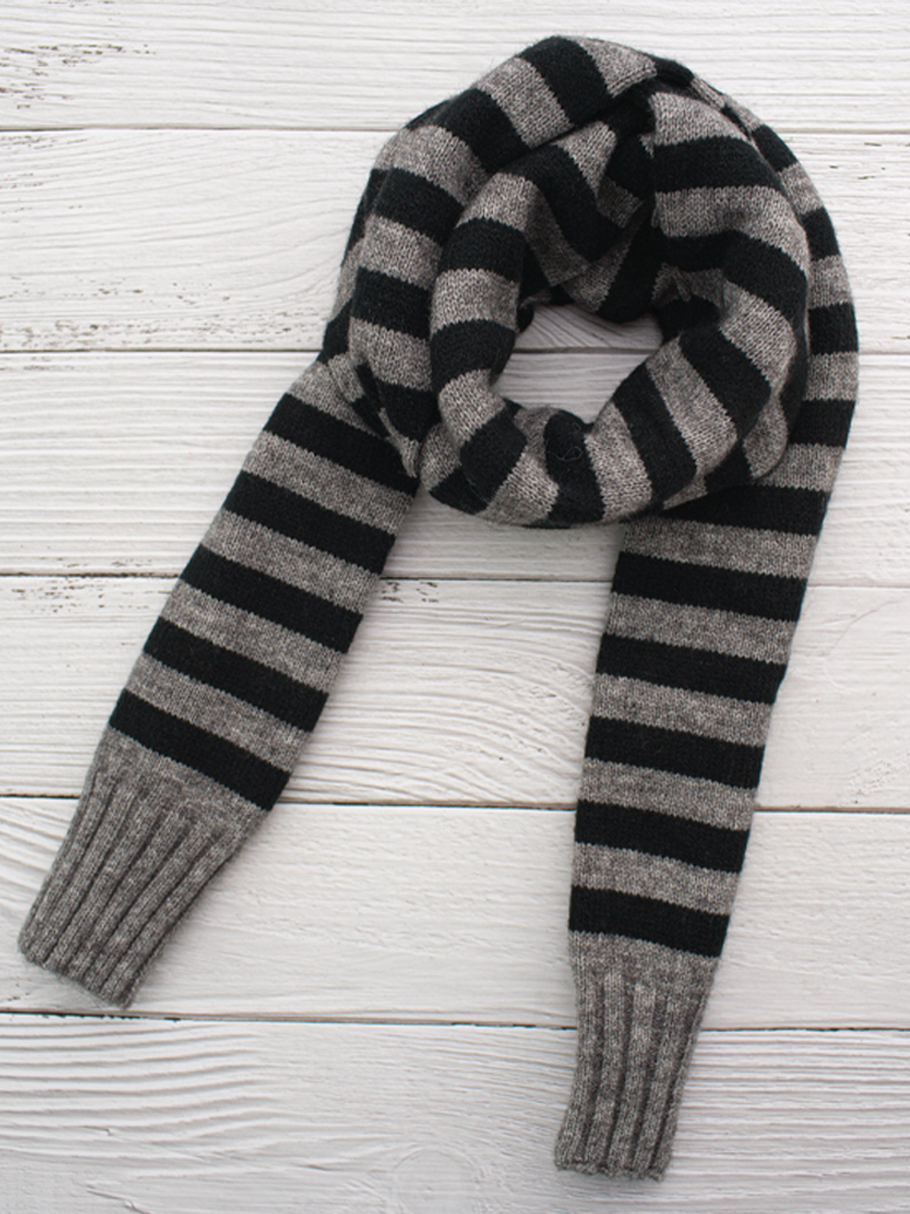 S1172條紋袖子造型針織圍巾(灰黑條紋)